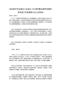 庆祝中华全国总工会100周年暨全国劳动模范和先进工作者表彰大会上的讲话学习(讲稿)