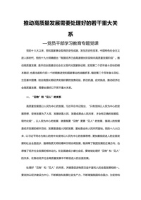 推动高质量发展需要处理好的若干重大关系word党课演讲稿
