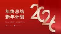 2026蓝色红色励志简约商务工作总结汇报ppt模板