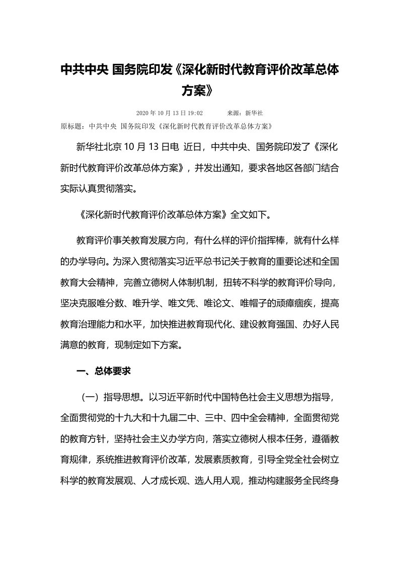 深化新时代教育评价改革总体方案word讲稿