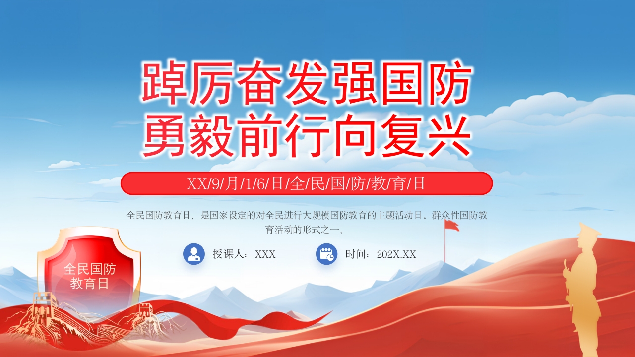 2024全民国防教育日主题宣传介绍党课PPT模板
