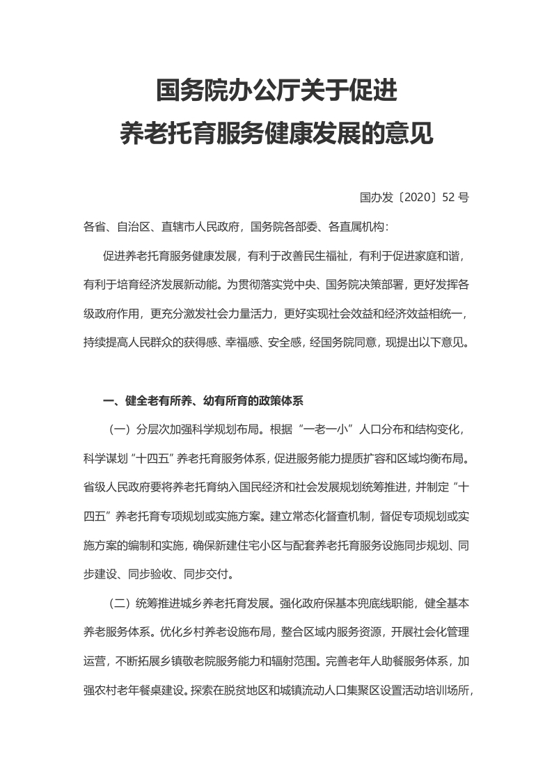 关于促进养老托育服务健康发展的意见解读党课(讲稿)