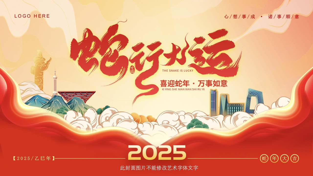 2025中国风喜庆蛇行大运蛇年年终工作总结新年计划通用ppt模板