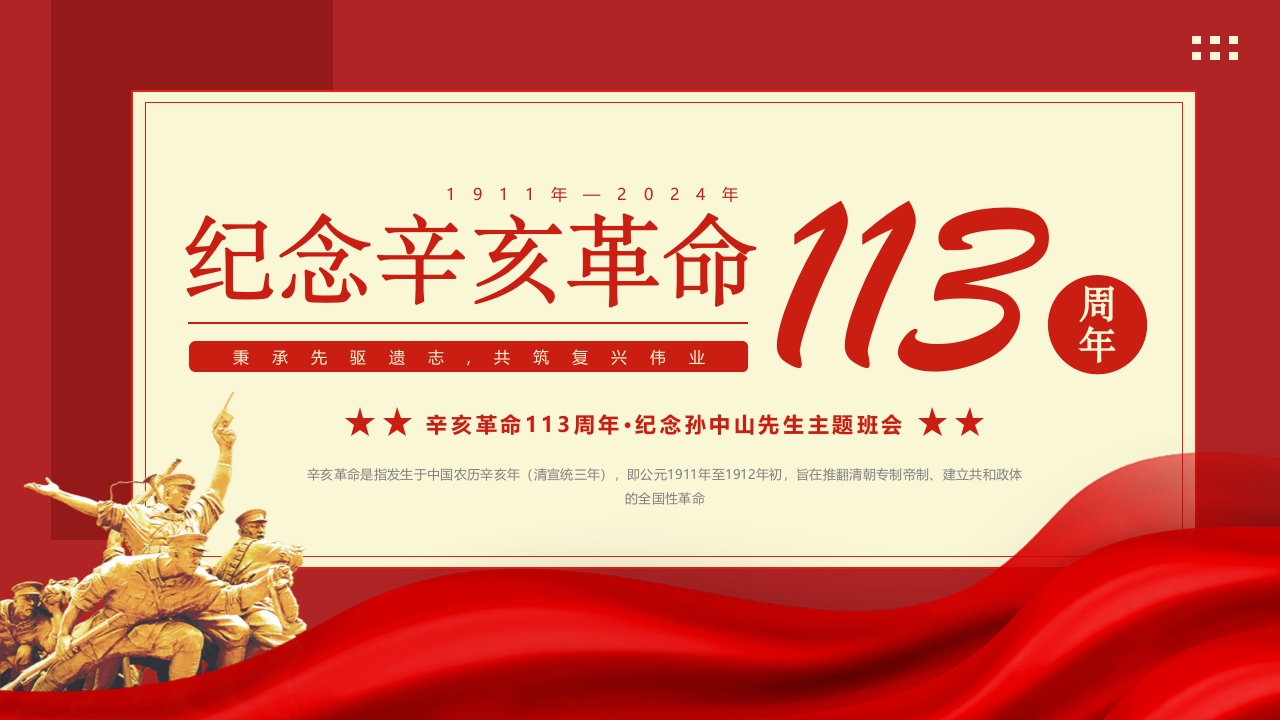 红色大气纪念辛亥革命113周年课件PPT模板
