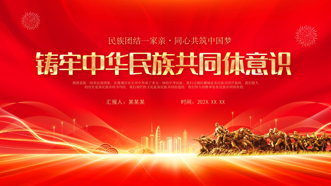 红色党政风铸牢中华民族共同体意识民族团结爱国教育党课ppt模板
