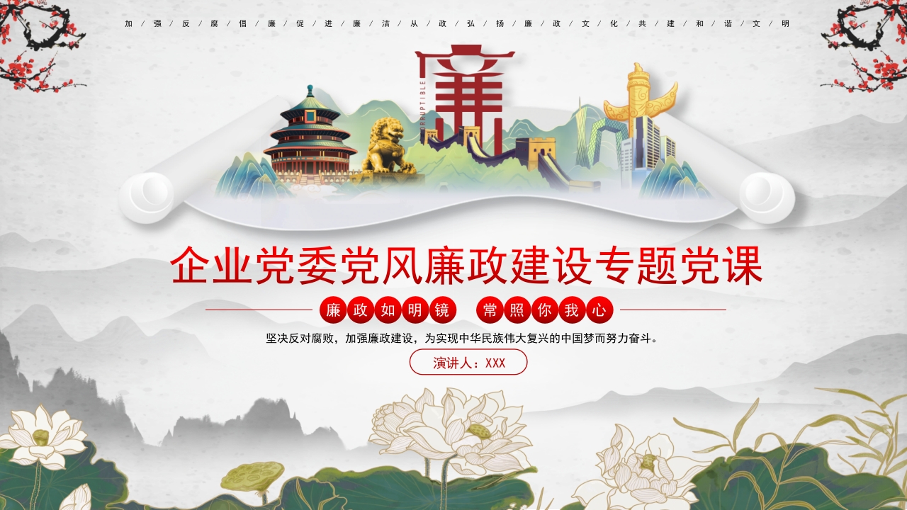 中国风企业党委党风廉政建设汇报专题党课PPT模板