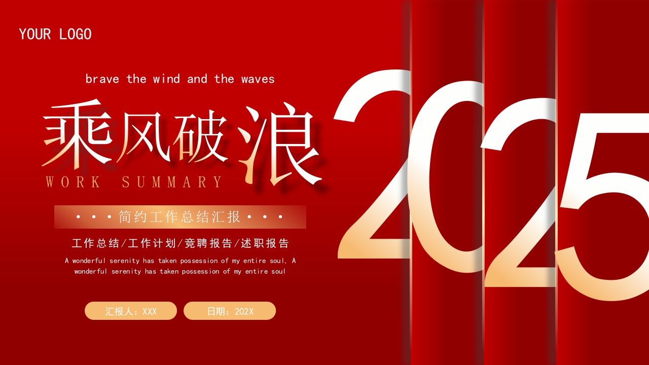 2025红色金色简约年终工作总结汇报计划PPT模板