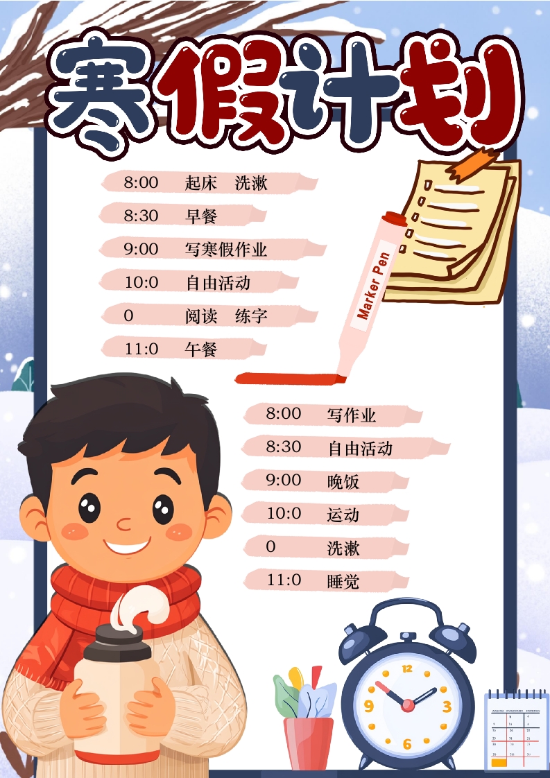 2025寒假计划卡通手抄报word手抄报