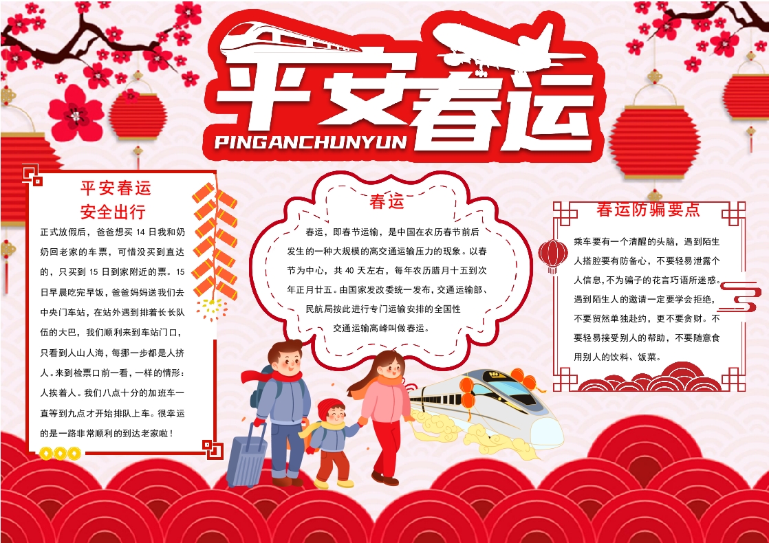春运手抄报平安春运小报春运安全手抄报word模板