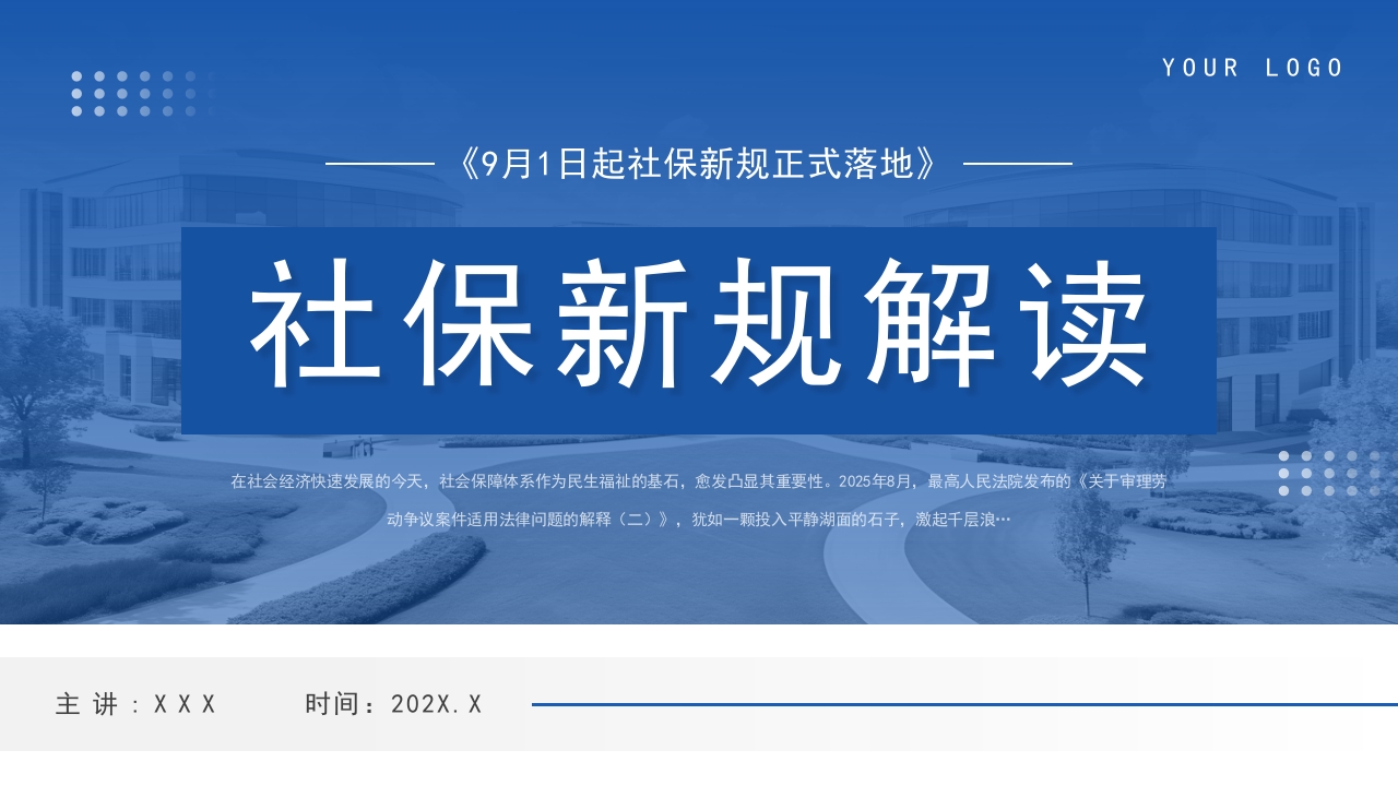 首页PPT课件模板PPT课件模板学习蓝色简约社保新规解读ppt模板
