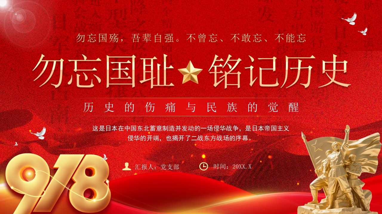 勿忘国耻铭记历史九一八918专题课件ppt模板