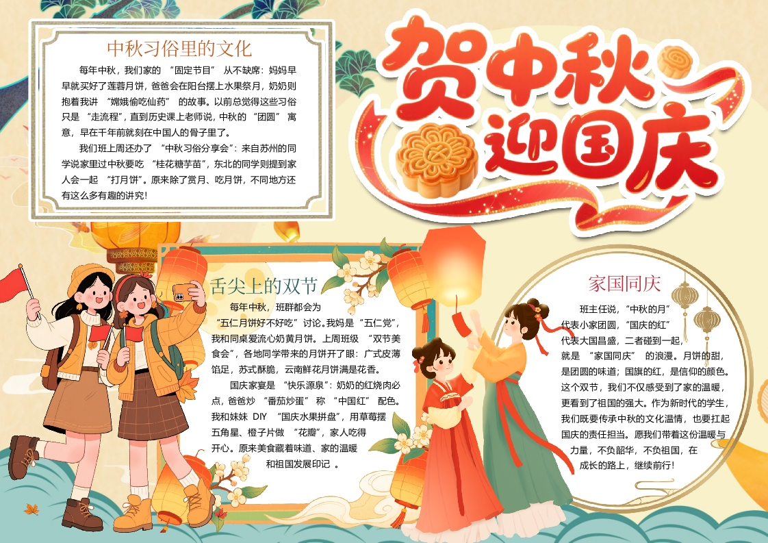 首页手抄报/小报手抄报/小报 贺中秋迎国庆小报手抄报word模版