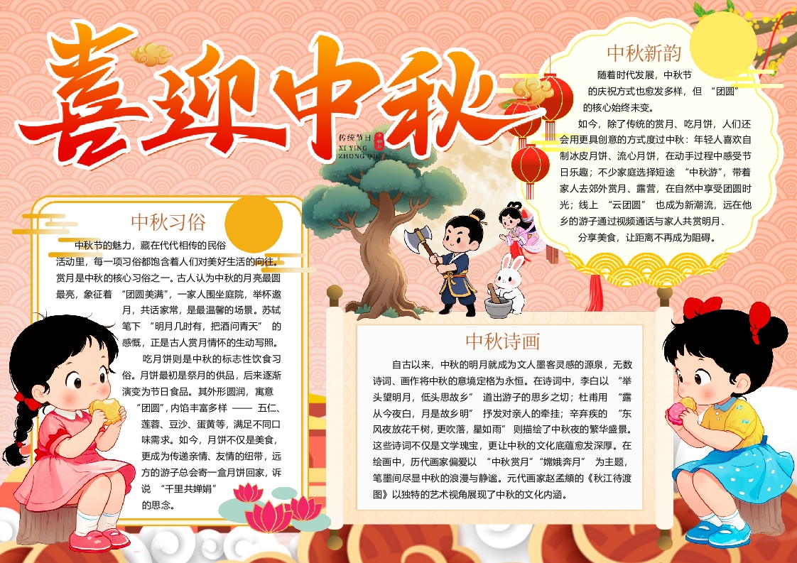 喜迎中秋节传统习俗小报手抄报word模板 中秋小报