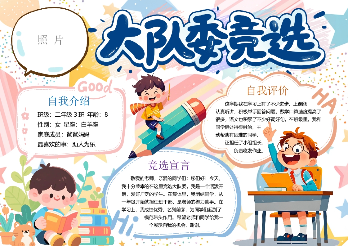 学校我要竞选大队委自我介绍小报手抄报word模板
