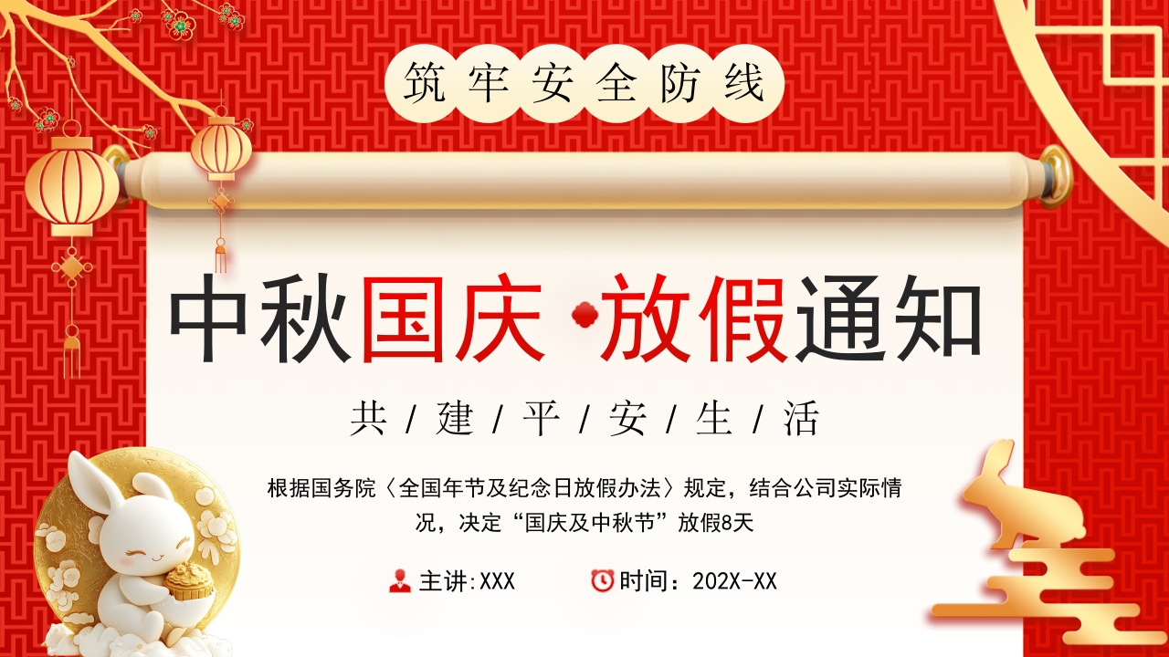红色卡通中秋国庆节放假通知ppt模板