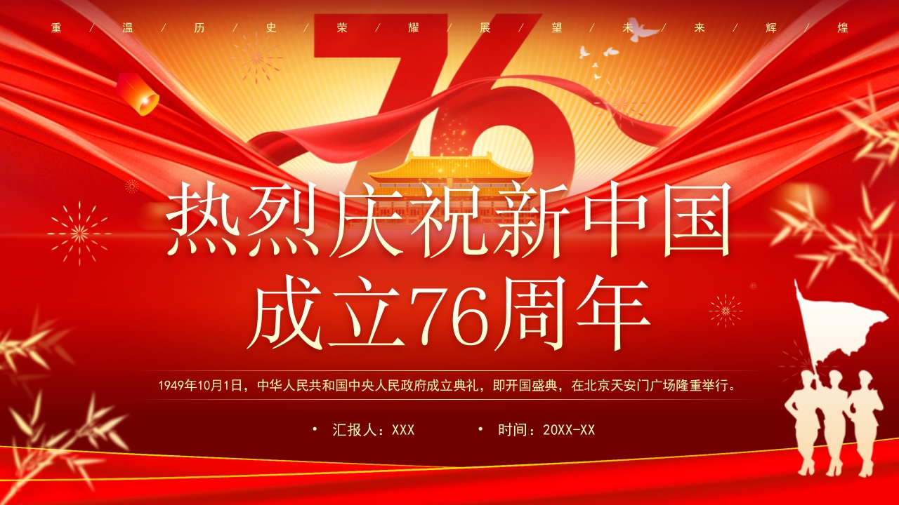 红色大气热烈庆祝新中国成立76周年课件ppt模板