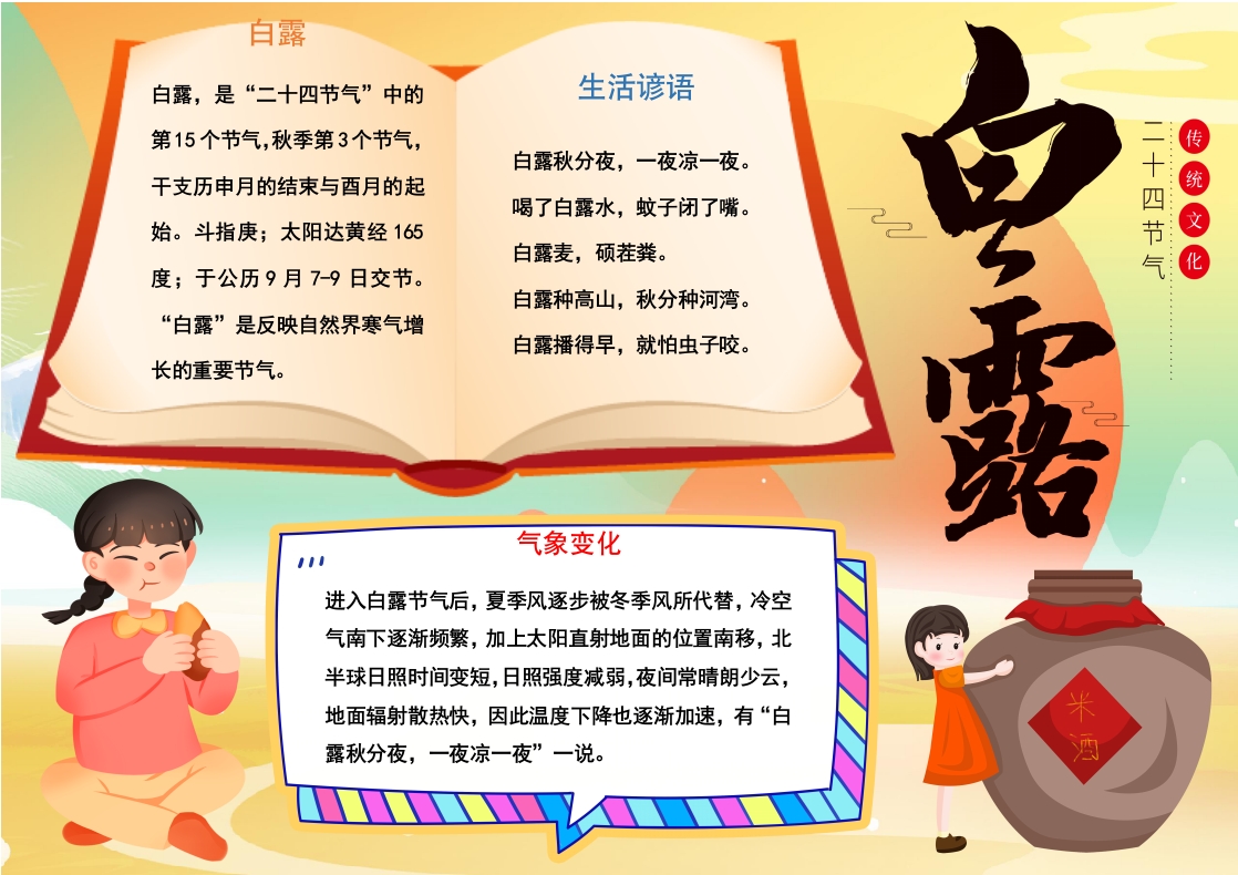 首页手抄报/小报手抄报/小报白露手抄报白露节气小报线描模板