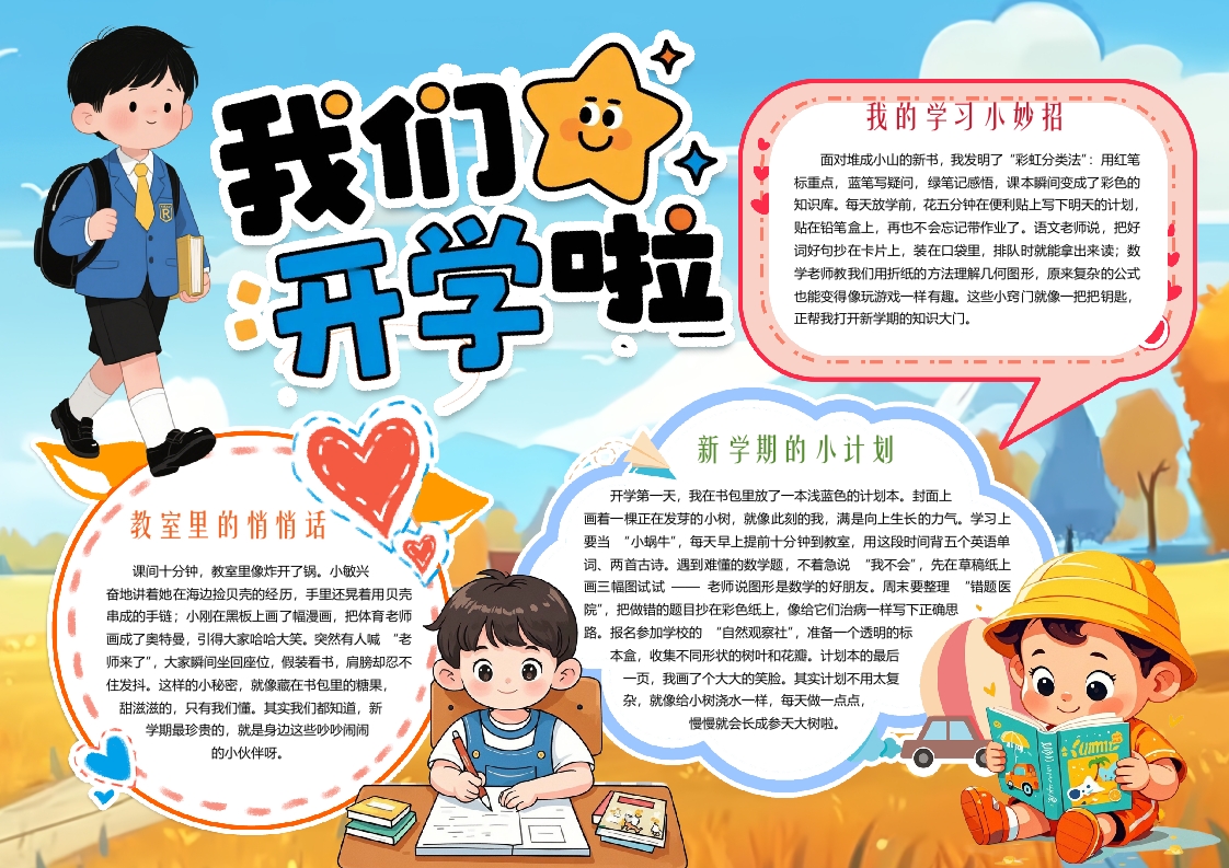 首页手抄报/小报手抄报/小报新学期小报 加油新学期我们开学啦小报手抄报word模板