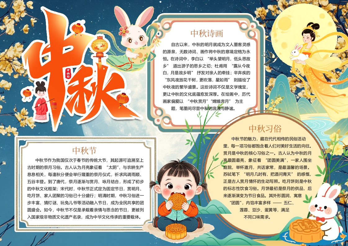 首页手抄报/小报手抄报/小报喜迎中秋习俗小报手抄报word模板