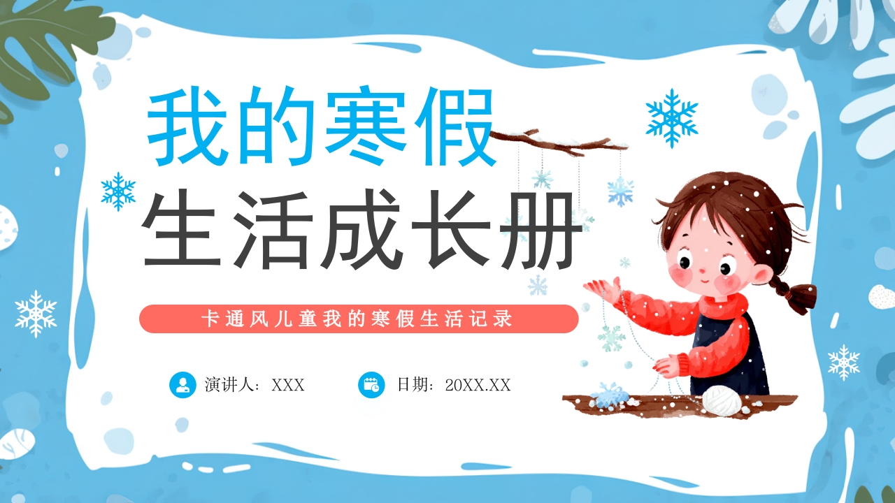 卡通风儿童我的寒假生活成长册介绍ppt模板