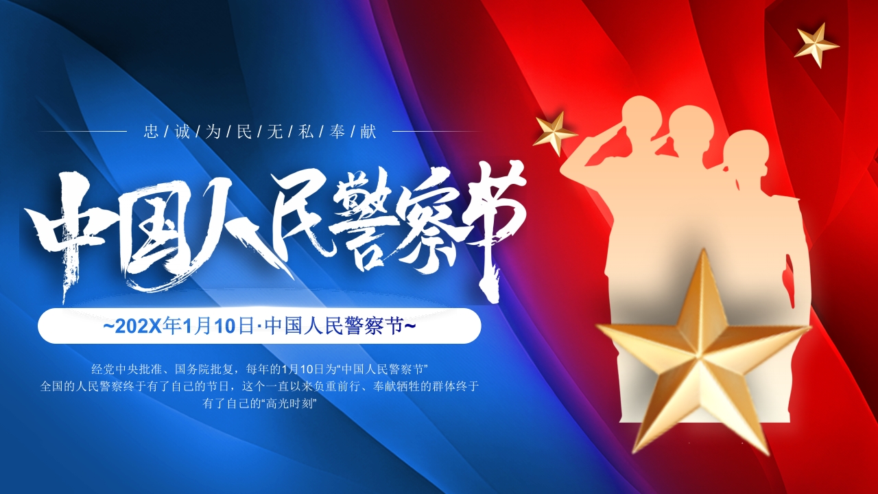 蓝色大气全国110宣传日人民警察节警营知识PPT模板