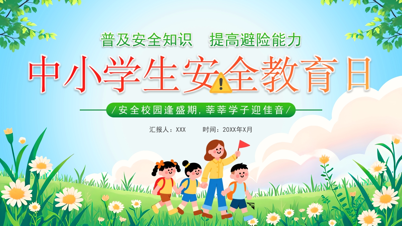 绿色清新风中小学生安全教育日主题介绍PPT模板
