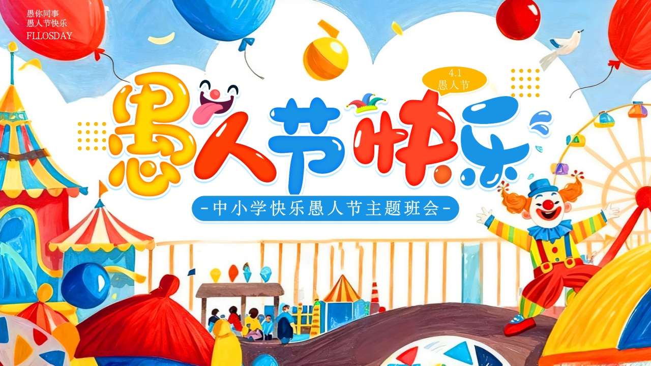 蓝色卡通风中小学快乐愚人节主题班会课件介绍PPT模板