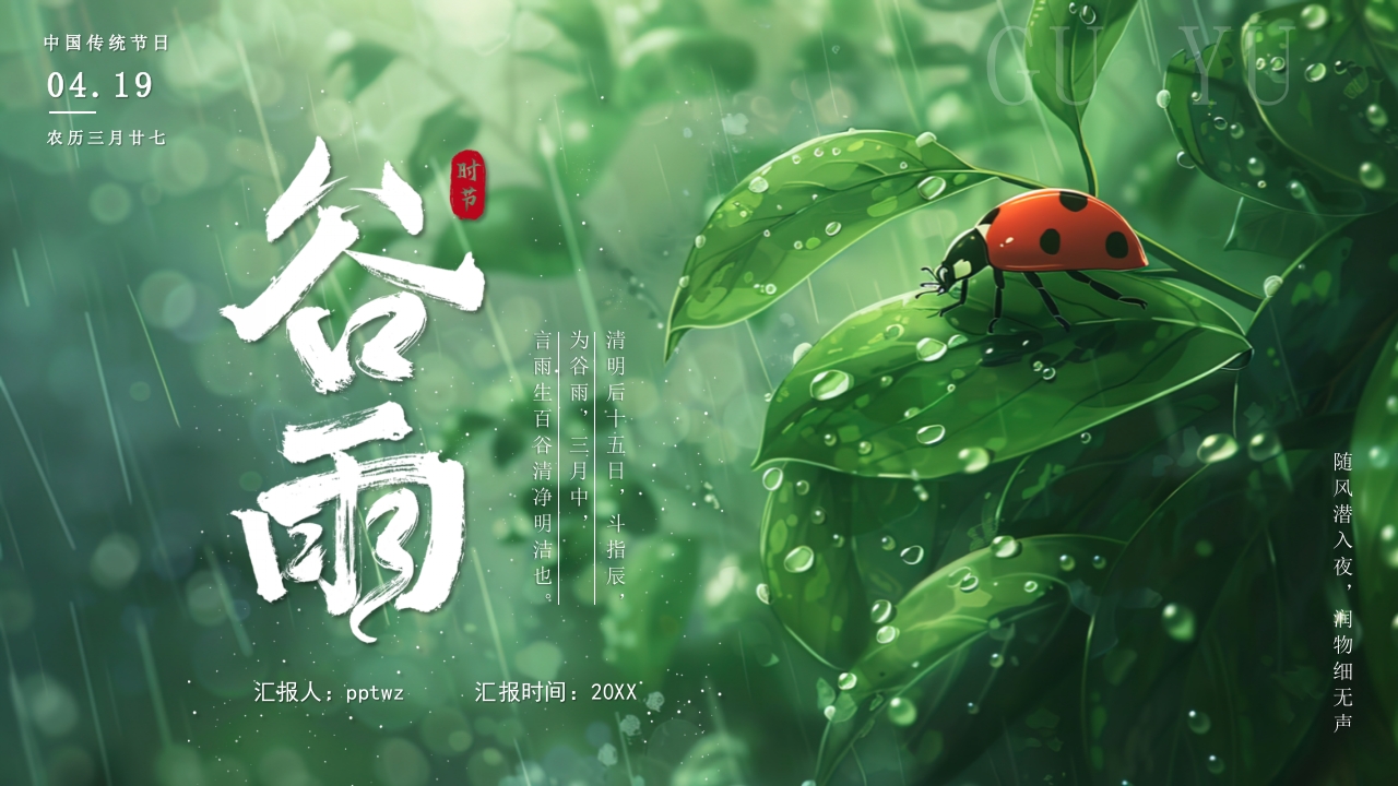 首页PPT课件模板PPT课件模板绿色清新二十四节气谷雨节气介绍ppt模板