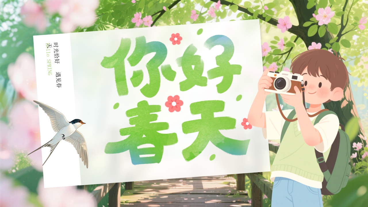 简约小清新春天你好主题通用PPT模板