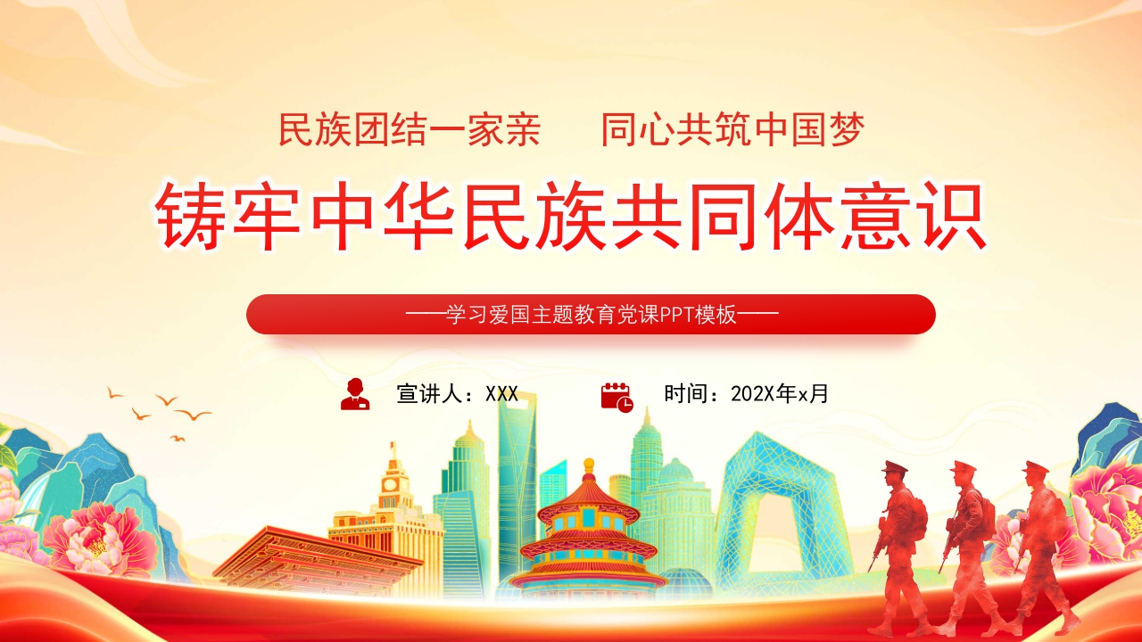 红色党政风铸牢中华民族共同体意识民族团结爱国教育党课ppt模板