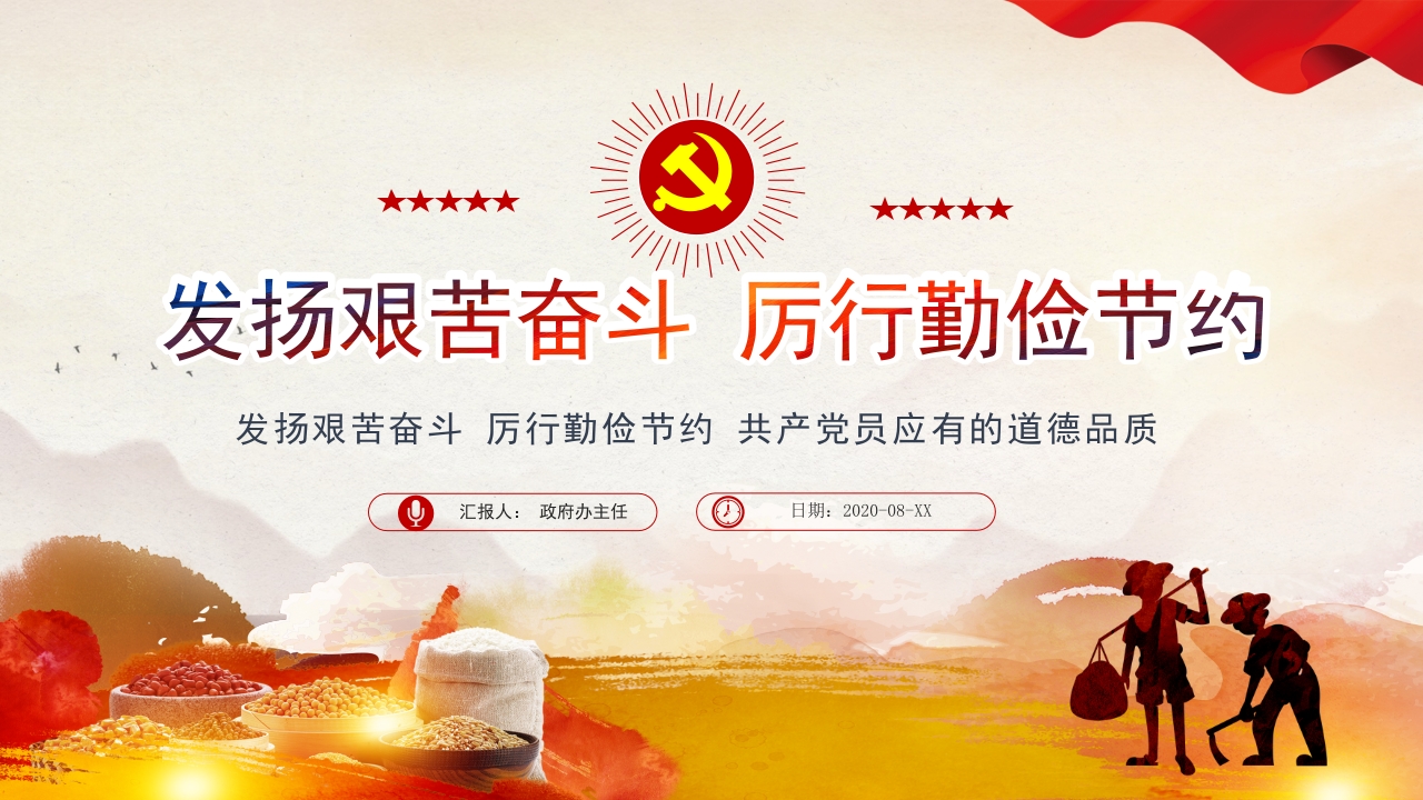 发扬艰苦奋斗 厉行勤俭节约 共产党员应有的道德品质党课ppt模板