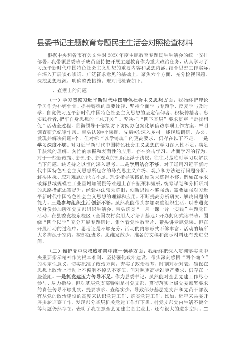 首页公文大全民主生活会县委书记主题教育专题民主生活会对照检查材料