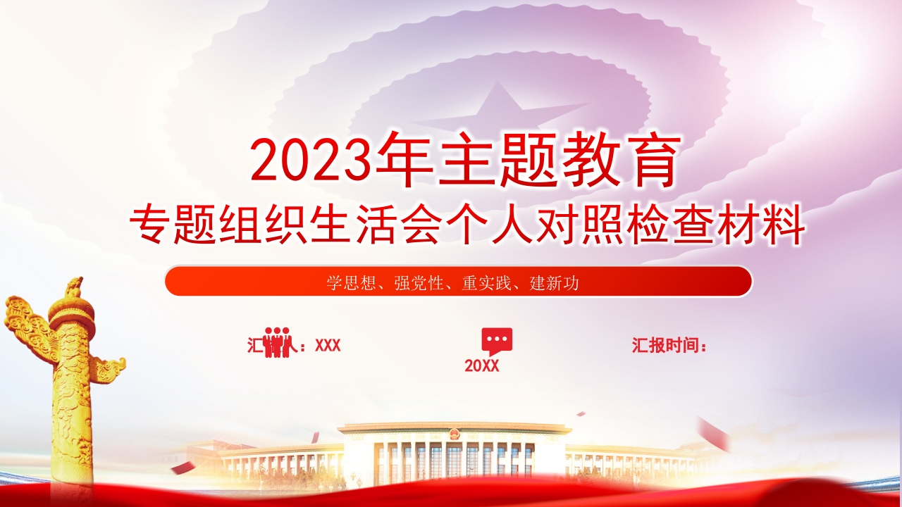 首页PPT课件模板PPT课件模板2023年主题教育专题组织生活会个人对照检查材料PPT课件