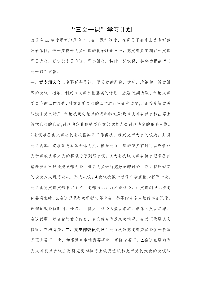 “三会一课”学习计划