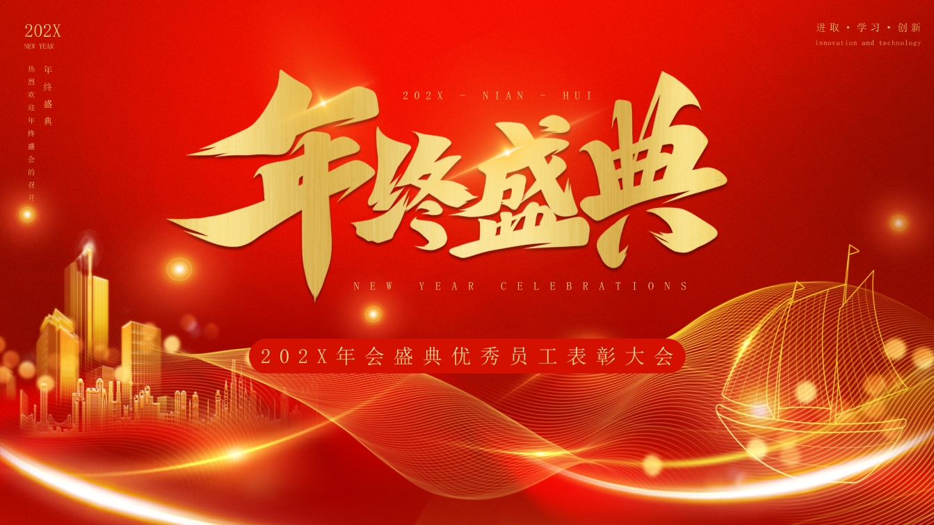 红金色简约年终盛典动态PPT模板