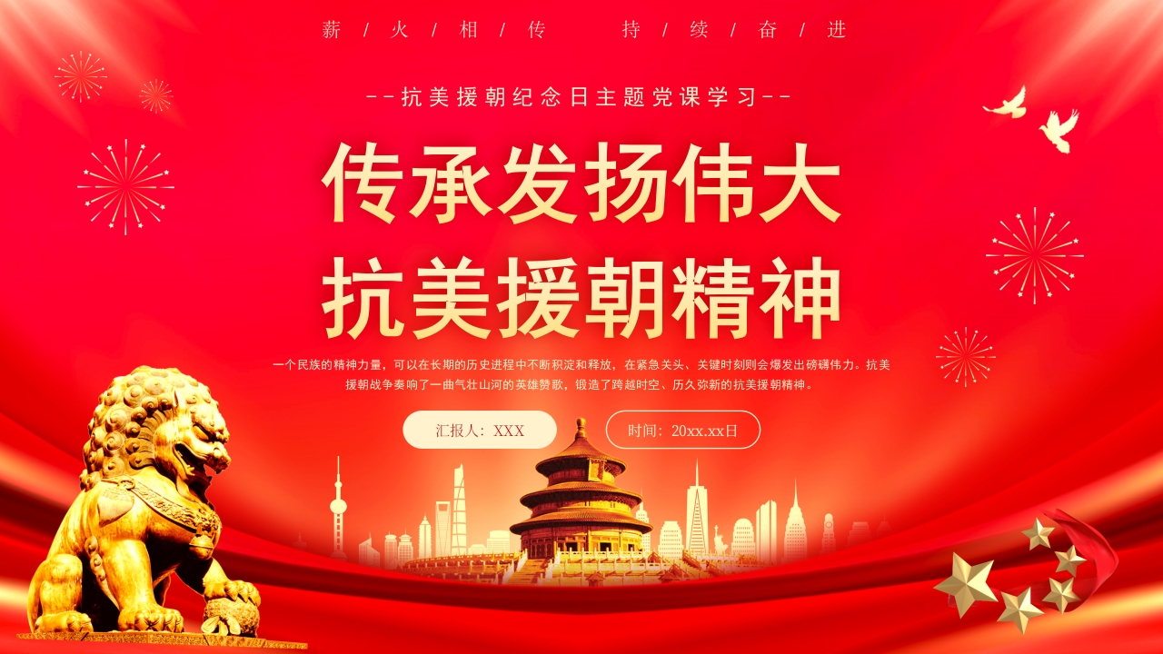 红色传承发扬伟大抗美援朝精神纪念日党课ppt模板