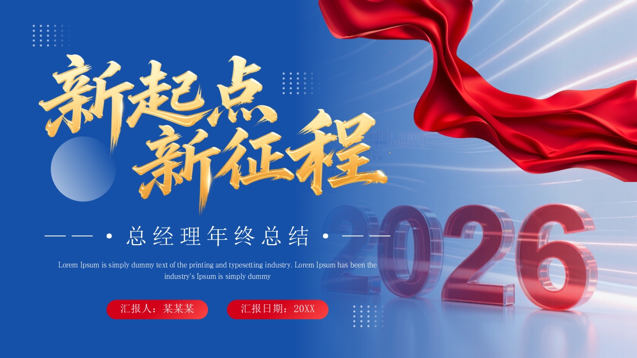 2026丝带简约风新起点新征程总经理年终总结PPT模板
