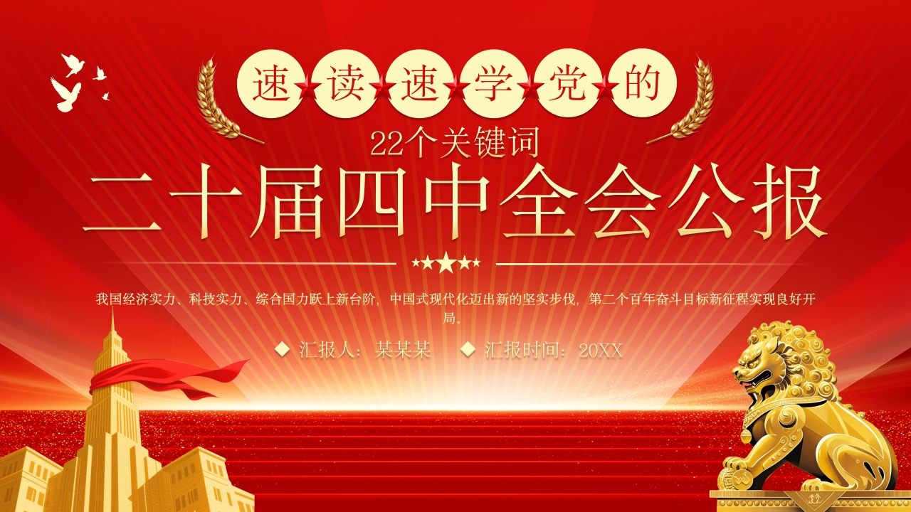 首页PPT课件模板PPT课件模板红色速读二十届四中全会公报精神22个关键词解读PPT模板