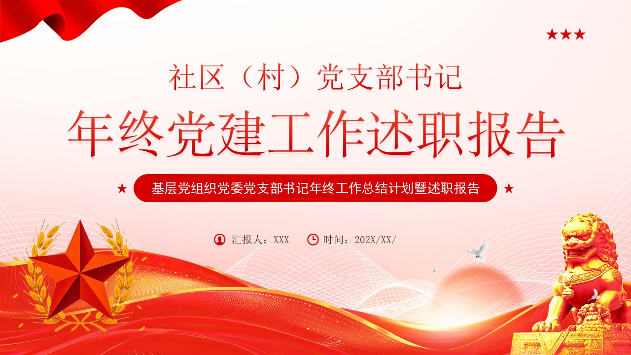 2026社区(村)党支部书记年终党建党课党政工作述职报告PPT模板