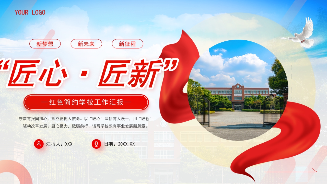 2026红色简约风学校校园工作汇报总结计划ppt模板